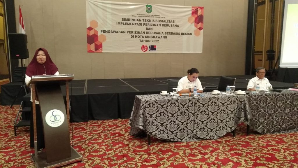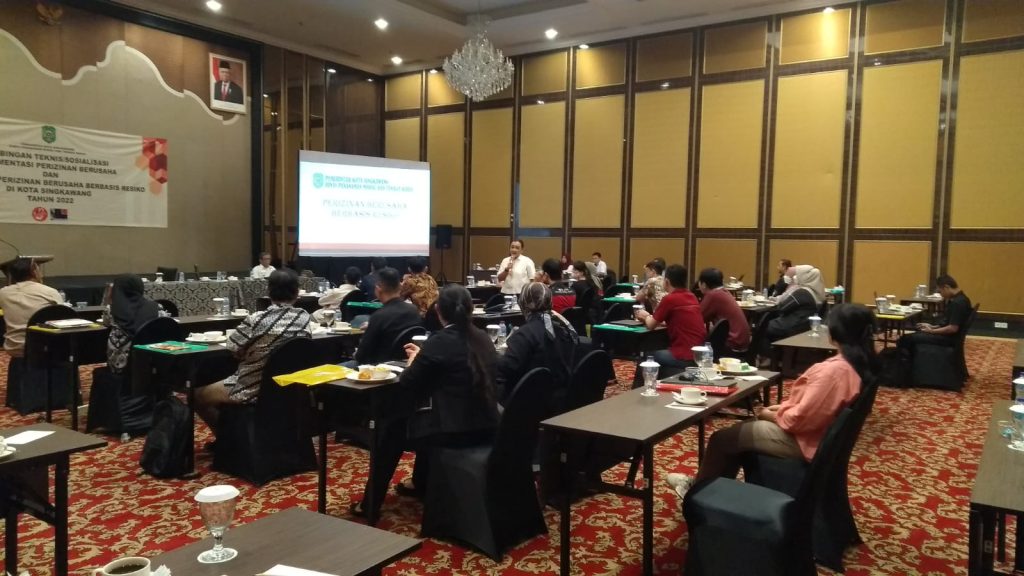DPMTK – Kegiatan Bimtek / Sosialisai Implementasi Perizinan Berusaha dan Pengawasan Perizinan Berusaha Berbasis Resiko Gelombang ke 4 dibuka oleh Plh. Sekretaris Dinas PMTK pada Hari Rabu Tanggal 6 Juli 2022 yang bertempat di Hotel Mahkota Singkawang.