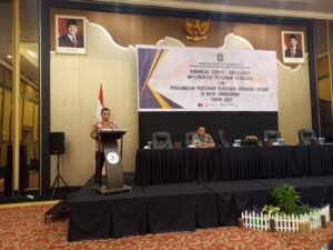 DPMTK – Kegiatan Bimtek / Sosialisasi Implementasi Perizinan Berusaha dan Pengawasan Perizinan Berusaha Berbasis Resiko Gelombang ke-8 Tahun 2024 dibuka oleh Sekretaris Dinas PMTK Hakimi, S.STP, M.Si pada Hari Kamis 7 November 2024 yang bertempat di Hotel Mahkota Singkawang.