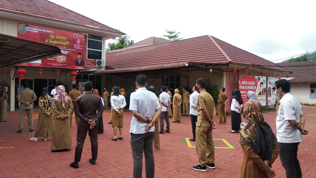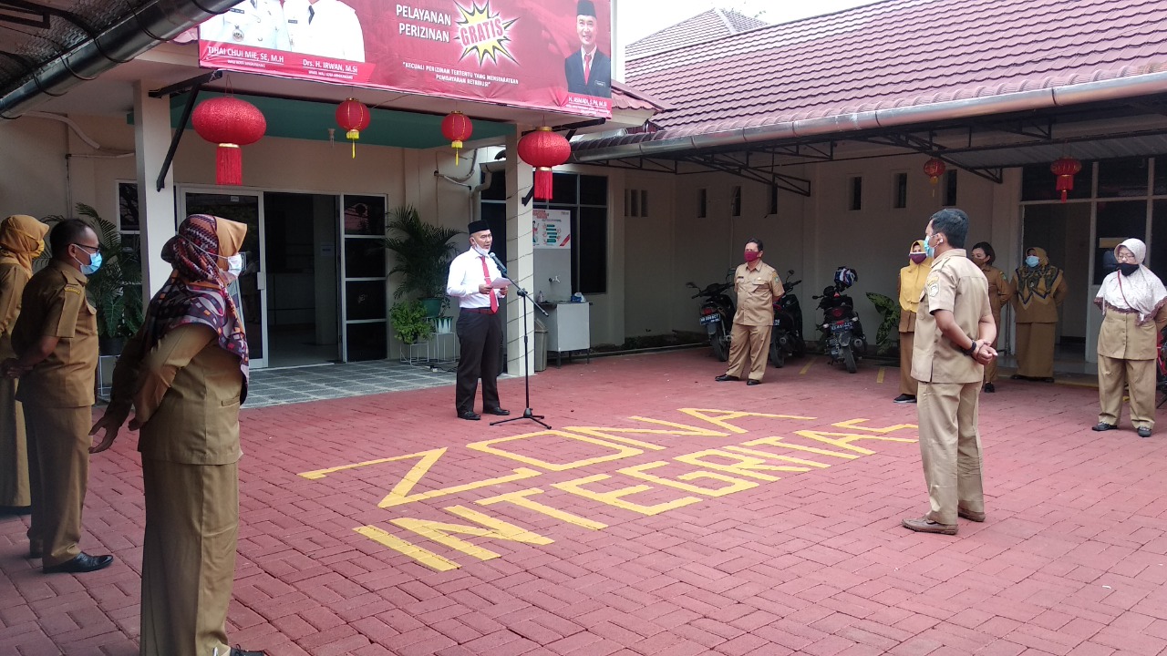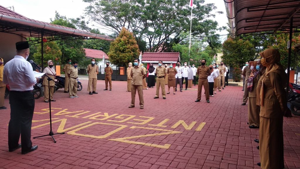 DPMTK – Kadis PMTK H. Asmadi, S.Pd, M.Si memberikan pembinaan kepada seluruh ASN Pegawai Negeri Sipil dan Pegawai Honorer DPMTK di halaman DPMTK pada hari Senin, 1 Februari 2021.