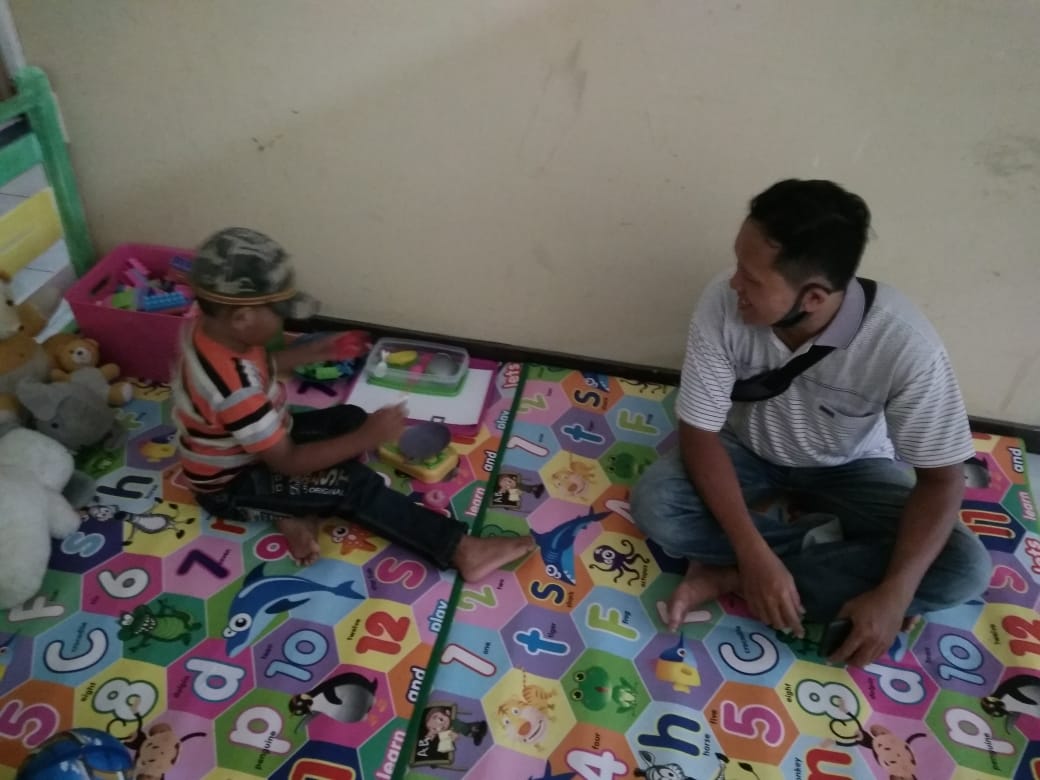 DMPTK – Pemohon perizinan yang membawa anak sedang menemani anaknya di ruang bermain anak, sambil menunggu proses perizinan yang dilakukanya selesai.