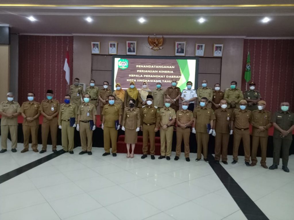 DPMTK – Kadis PMTK H. Asmadi, S.Pd, M.Si bersama Kepala OPD lainnya melakukan Penandatanganan Perjanjian Kinerja Kepala Perangkat Daerah Kota Singkawang Tahun 2021 di ruang Bumibetuah Kantor Wali Kota Singkawang. Selasa, 30 Maret 2021