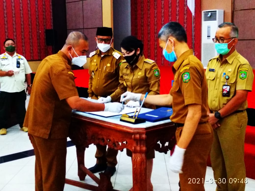 DPMTK – Kadis PMTK H. Asmadi, S.Pd, M.Si bersama Kepala OPD lainnya melakukan Penandatanganan Perjanjian Kinerja Kepala Perangkat Daerah Kota Singkawang Tahun 2021 di ruang Bumibetuah Kantor Wali Kota Singkawang. Selasa, 30 Maret 2021