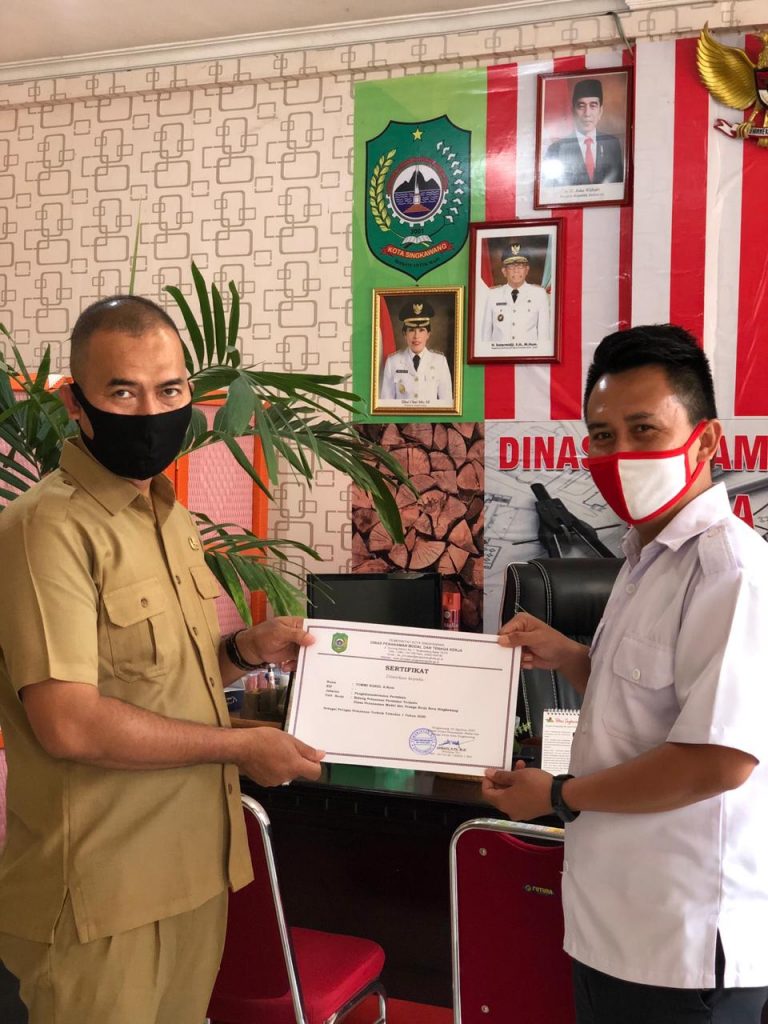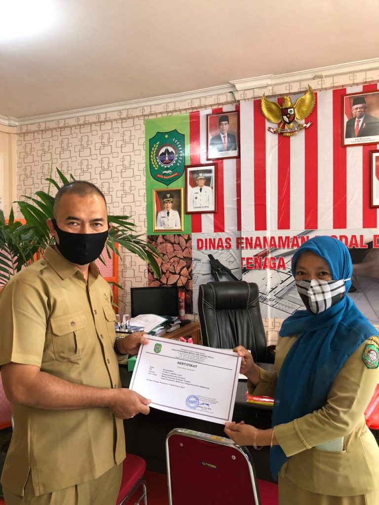 DPMTK– Kadis PMTK H. Asmadi, S.Pd, M.Si memberikan penghargaan kepada staf yang memberikan pelayanan publik terbaik ditahun 2020 dan tahun 2019 serta pemberian pin kepada staf yg kurang disiplin. Selasa, 15 September 2020