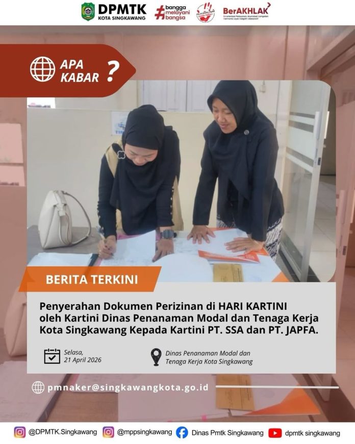 DPMTK – Penyerahan dokumen perizinan yang telah selesai sesuai dengan SOP oleh kartini DPMTK (bu Ida rosanti) kepada kartini PT. SSA dan PT. JAPFA