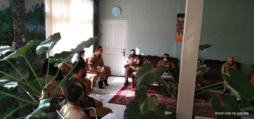 DPMTK – Kadis PMTK H. Asmadi, S.Pd, M.Si memimpin rapat koordinasi staf Dinas Penanaman Modal dan Tenaga Kerja berkaitan dengan pelayanan perizinan dan pelaksanaan tugas masing-masing bidang sesuai dengan rencana pelaksanaan kegiatan, bertempat di ruang kadis. Senin, 15 Februari 2021