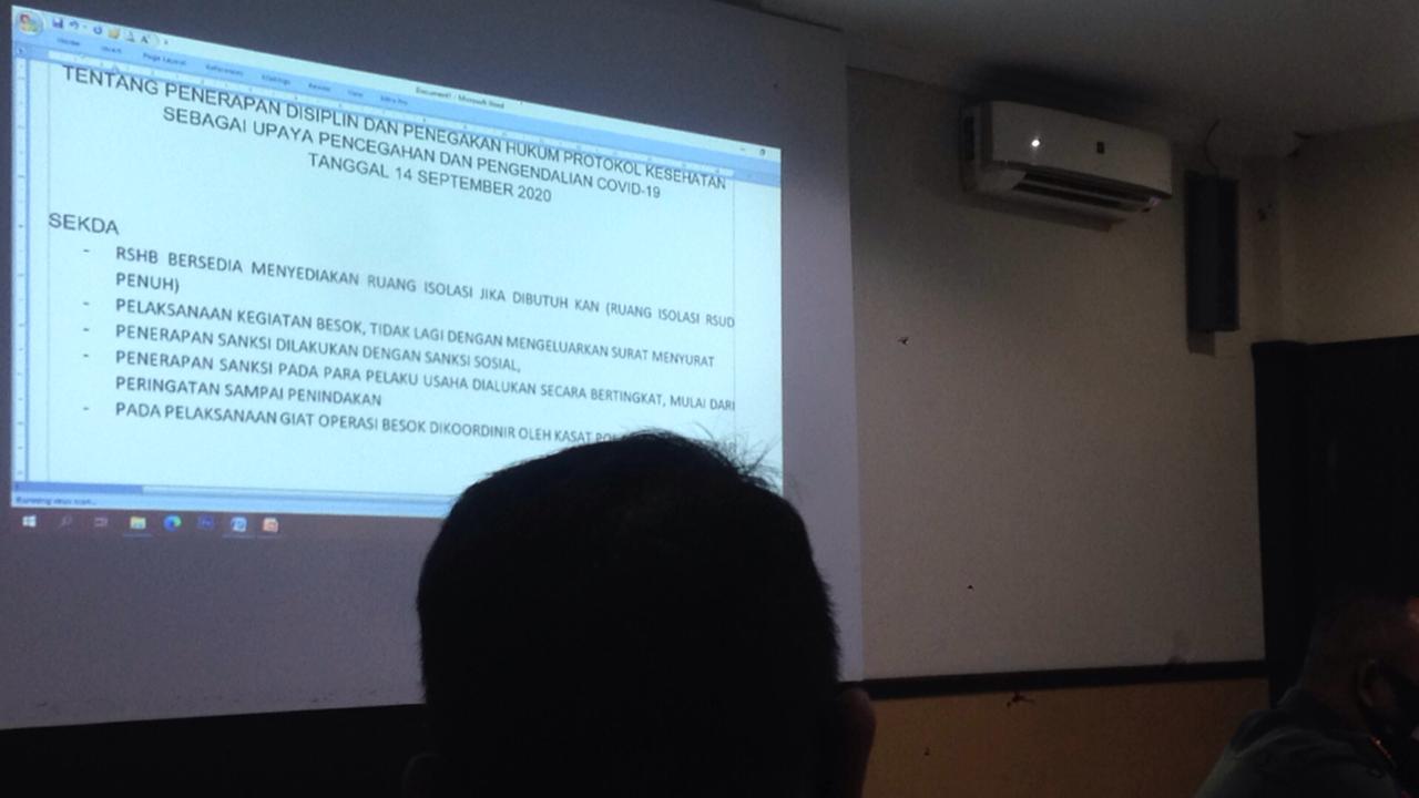 DPMTK – Pelaksanaan rapat persiapan giat operasi penerapan Perwako Nomor 49 Tahun 2020 tentang Penerapan Disiplin dan Penegakan Hukum Protokol Kesehatan Sebagai Upaya Pencegahan dan Pengendalian Covid-19 yang dihadiri oleh Sekretaris DPMTK bertempat di Bumi Bertuah Kantor Wali Kota Singkawang. Senin, 14 September 2020.