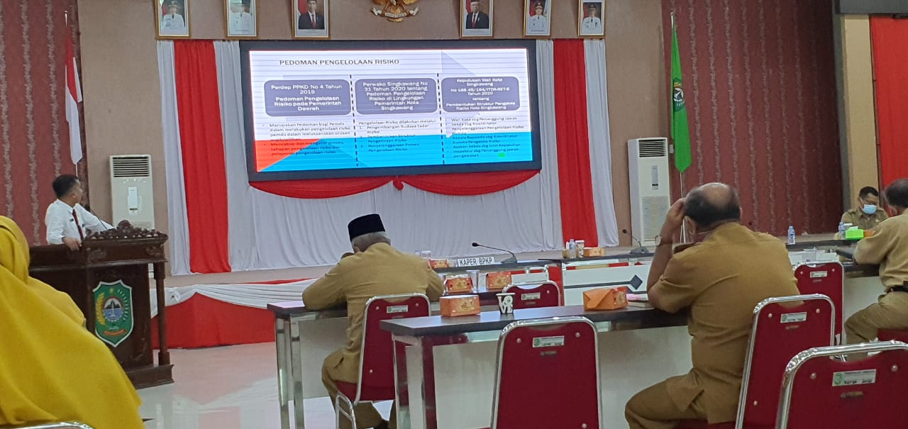 DPMTK – Kabid Penanaman Modal DPMTK Kota Singkawang Triwahdina Safriantini, SP, MT mengikuti kegiatan Implementasi Manajemen Resiko di Lingkungan Pemerintah Kota Singkawang yang dilaksanakan di Balairung Kantor Wali Kota Singkawang. Selasa, 1 Desember 2020