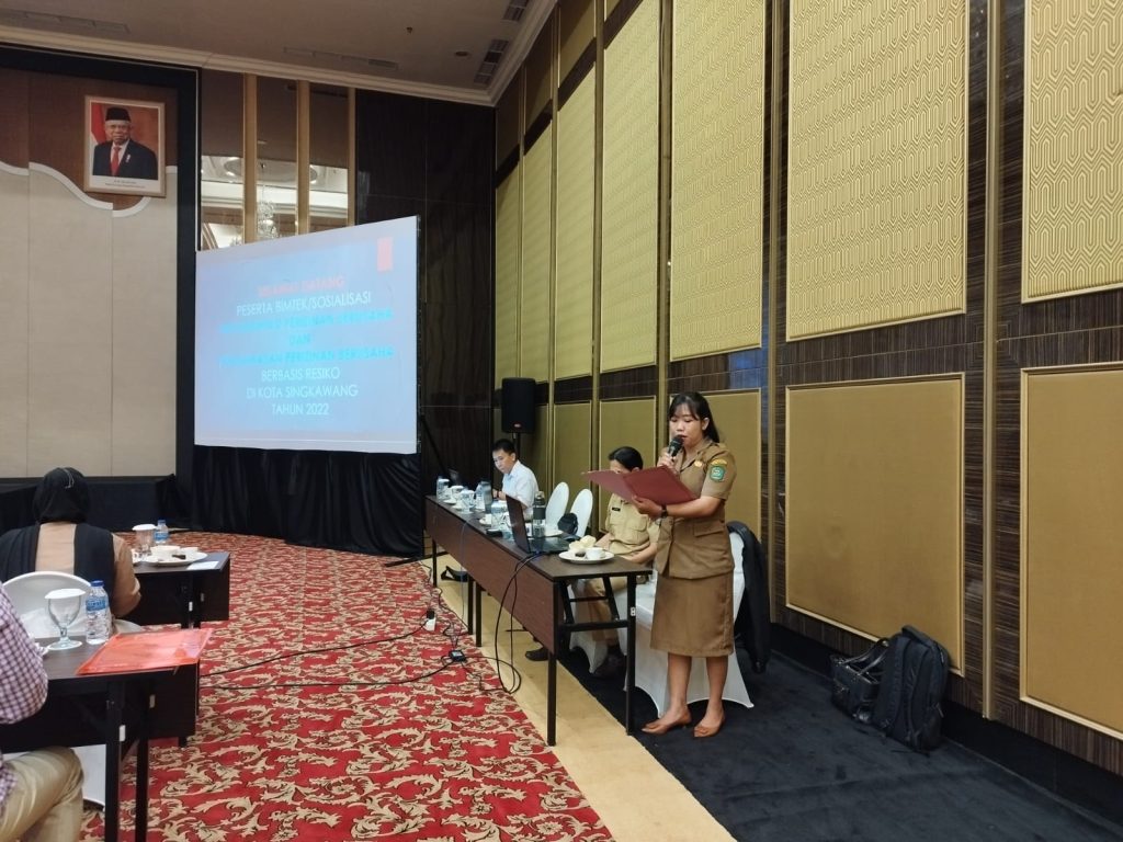 DPMTK – Kegiatan Bimtek / Sosialisai Implementasi Perizinan Berusaha dan Pengawasan Perizinan Berusaha Berbasis Resiko Gelombang ke 5 dibuka oleh Plh. Sekretaris Dinas PMTK pada Hari Selasa, tanggal 23 Agustus 2022 yang bertempat di Hotel Mahkota Singkawang. Kegiatan bimtek tersebut diikuti oleh peserta dari sektor ekonomi kreatif di Kota Singkawang.