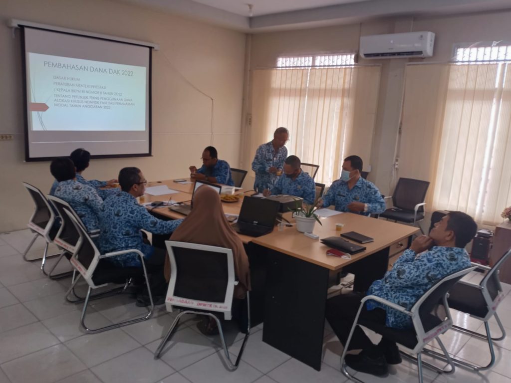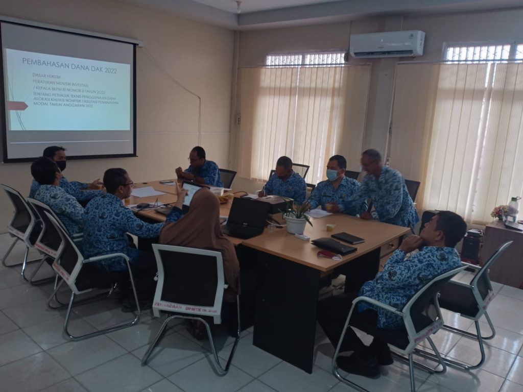 DPMTK – Kegiatan pemaparan Peraturan Menteri Investasi/Kepala BKPM No. 8 Tahun 2021 tentang Petunjuk Teknis Penggunaan Dana Alokasi Khusus Non Fisik Fasilitasi Penanaman Modal Tahun Anggaran 2020, yang disampaikan oleh Kabid Penanaman Modal kepada Kadis DPMTK, Sekretaris Dinas, Kepala Bidang serta Pejabat Terkait di Lingkungan Dinas PMTK.