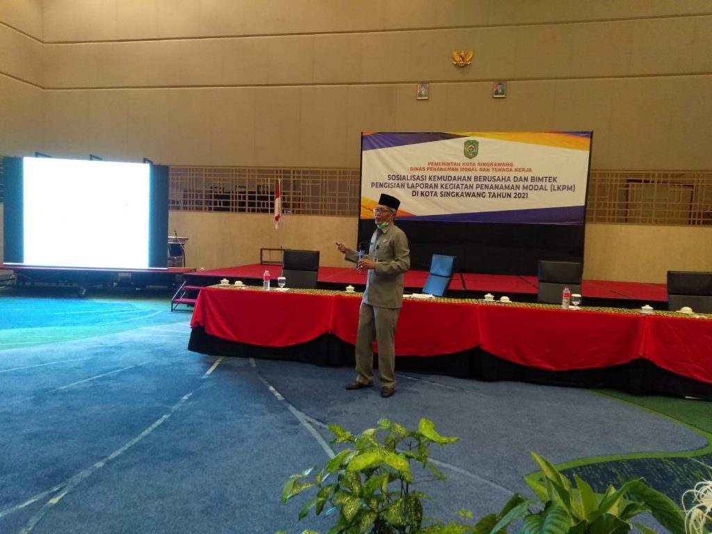DPMTK – Bertempat di Ballroom Hotel Swiss Belinn Singkawang, Sosialisasi Kemudahan Berusaha dan Bimtek Laporan Kegiatan Penanaman Modal (LKPM) Gel . 3 dibuka oleh Plt. Kepala Dinas PMTK HAKIMI, S.STP, M.Si, dalam sambutannya menyampaikan bahwa Nilai Capaian Realisasi Investasi Kota Singkawang Tahun 2020 Senilai 1,1 Miliyar.